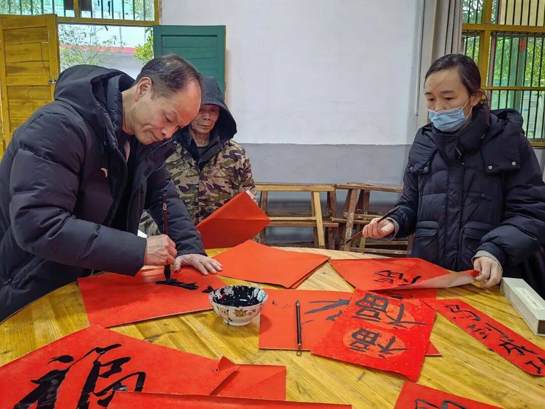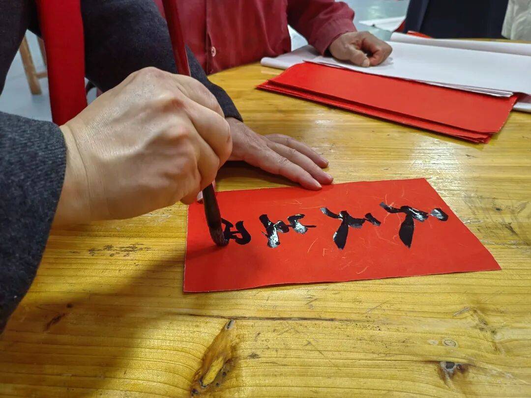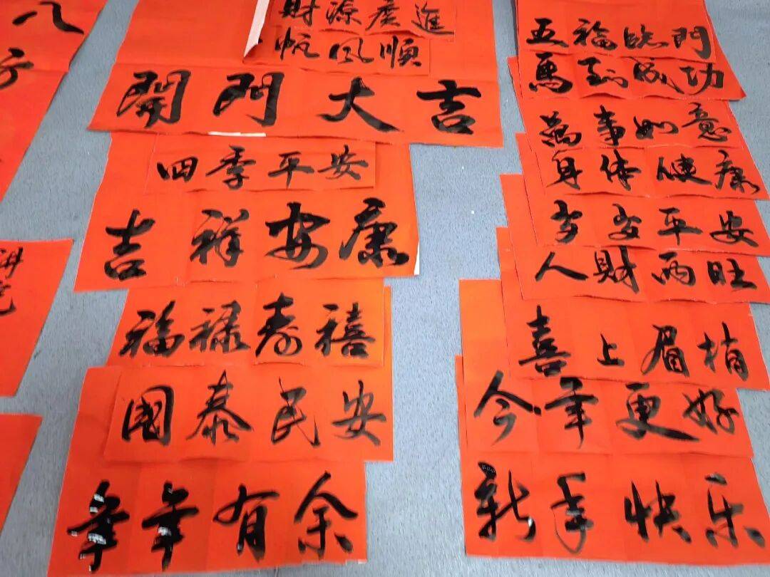 现场愈发浓厚,书法老师们在喜庆红纸上挥毫泼墨,写下一幅幅寓意吉祥的春联。既有“骏马携财临吉宅 春风送福入祥门”等贴合马年春节的诚挚祝愿,也有“福寿双全添富贵 人财两旺永平安”等对未来的美好期盼。