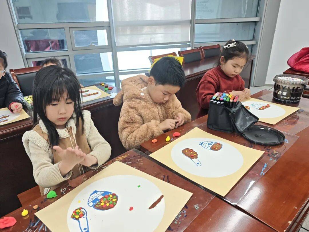 在黏土创作环节,孩子们化身“小小美食家”,用各色黏土精心制作红枣、花生、莲子等“粥料”。他们充分发挥想象力,创作出一碗碗色彩斑斓、造型独特的“腊八粥”作品,不仅锻炼了动手能力,更在创作中体会到传统美食的制作乐趣,过程中大家相互交流、互帮互助,也培养了团队协作意识,进一步增强了对中华优秀传统文化的认同感与自豪感,也为未成年人思想道德建设注入了鲜活的文化养分。