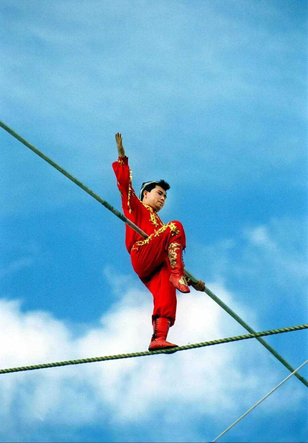 △吉尼斯世界纪录保持者、国家级非遗项目“达瓦孜”代表性传承人——“高空王”阿迪力空中走大绳