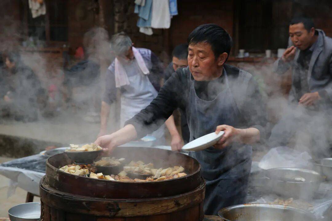 香碗是“九大碗”的主力军,据传延续于明代宫廷,将蛋清、蛋黄、肉末分层蒸熟,辅以木耳、黄花、酥肉,灌入清汤二次蒸煮,其味鲜香扑鼻,令人垂涎三尺。